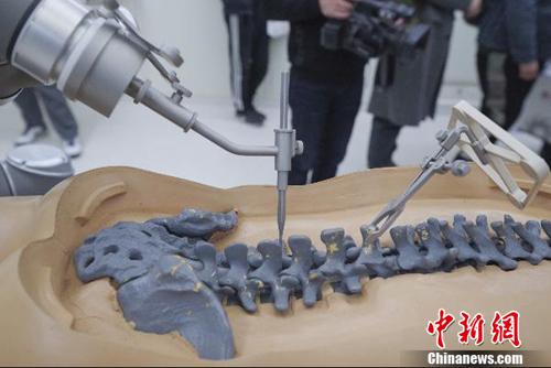 据现场工作人员介绍,这款中国自主研发的手术机器人,是全球唯一能够开展四肢、骨盆以及颈、胸、腰、骶脊柱全节段手术的骨科手术机器人系统。手术时创伤小、时间短、辐射少。