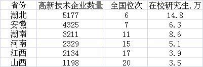 数据显示,2017年,湖北的高新技术企业数量达到5177家,是中部六省中唯一超过5000家的省份,位列全国第六位。2018年,湖北的在校研究生数量达到了14.8万人,在中部地区遥遥领先。
