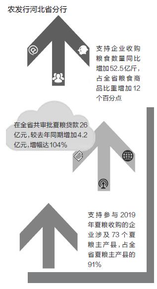 三是市场份额增加。通过不断加大粮食贷款支持力度,2019年该行支持企业收购粮食占全省粮食商品量的市场份额也在不断提高。截至5月末,农发行河北省分行支持企业收购粮食76.4亿斤,同比增加52.5亿斤,占全省粮食商品的17%,同比增加12个百分点,预计随着收购工作向前推进,占比还将继续增加。