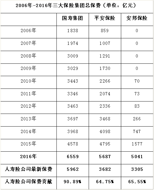 无论是在“老大”中国人寿、和诞生于上世纪80年代的平安人寿,在过去一年,都不能忽视这家成立仅6年的后起之秀获取保费的能力。若加上和谐健康、安邦养老,三家“安邦系”寿险公司市场份额在2016年一度接近16%,问鼎行业老大。