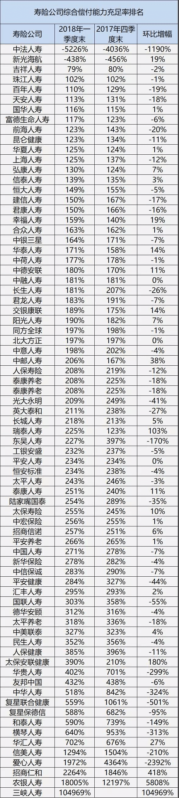按此标准,相比上个季度,新增1家寿险公司偿付能力不达标,即吉祥人寿,还有中法人寿、新光海航等3家寿险公司偿付能力也不达标。一共为4家公司。