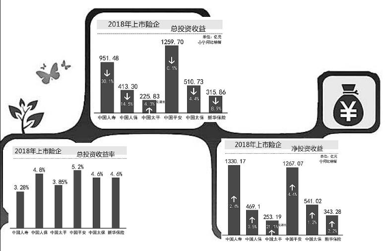 上市保险公司均已于近期披露2018年年报,上市险企在过去一年里交出怎样的投资“答卷”也是各家险企年报中的一大看点。从年报披露的信息来看,2018年,中国人寿、中国人保、中国太平、中国平安、中国太保、新华保险的投资收益率普遍有所下滑。除中国平安外,其他5家险企的总投资收益率均未超过5%,6家上市险企的平均总投资收益率为4.39%。