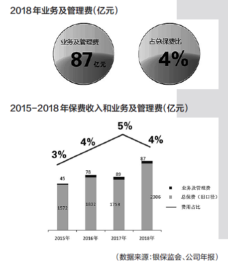 华夏人寿年报数据显示,公司2017年的业务及管理费为89亿元,占比总保费的5%,但2018年这一指标下降至4%。对此,华夏人寿新闻发言人表示,公司经营存在许多固定成本,随着业务快速发展,规模效应持续释放,业务及管理费会不断摊薄。与此同时,公司通过“去中间化、去行政化”,改善经营管理,实现提质增效的发展战略,有效降低了业务及管理费用占比。