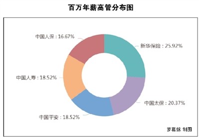 其中,500万元<年薪<1000万元,共6名高管,中国平安5名,新华保险1名;300万元<年薪<500万元,共14名高管,新华保险10名、中国平安3名、中国太保1名;100万元<年薪<300万元,一共有34名高管,中国太保和中国人寿各10名,中国人保9名,新华保险3名,中国平安2名。