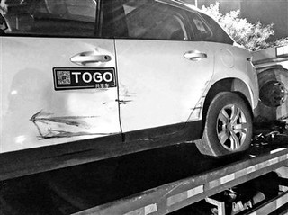 尚某驾驶共享汽车发生交通事故,图为肇事车辆