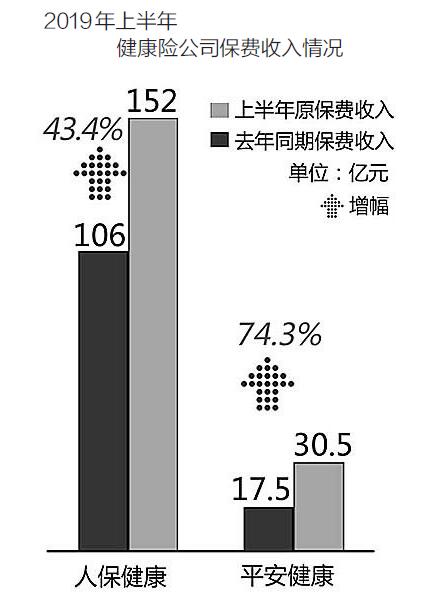 值得关注的是,上半年,两家专业健康险公司始终保持其一路高歌的增长态势。其中,人保健康上半年累计原保费收入152亿元,同比增长43.4%;平安健康原保费收入30.5亿元,同比增长74.3%。