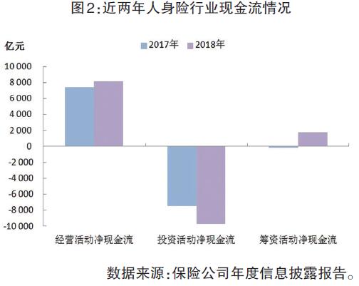 4.部分公司经营性现金流趋紧。人身险行业整体流动性较为充裕,经营活动净现金流改善,但公司表现呈现分化特点。2018年,人身险公司合计现金及等价物净增加额189.85亿元,较2017年-275.41亿元的水平同比大幅增加。其中,大型公司2018年合计经营性净现金流6438.71亿元,同比多流入727.83亿元,带动人身险行业经营性现金流实现正增长。个别中小公司转型基础较差,趸缴业务占比较高,存量业务退保压力较大,叠加中短存续期业务受到严格管控后业务收入大幅下降,经营活动净现金流出金额较大。