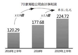 此外,70家非上市寿险公司上半年共计实现盈利224.72亿元,总净利润增长84%,是2018年全年的1.3倍,是2018年同期的1.9倍。