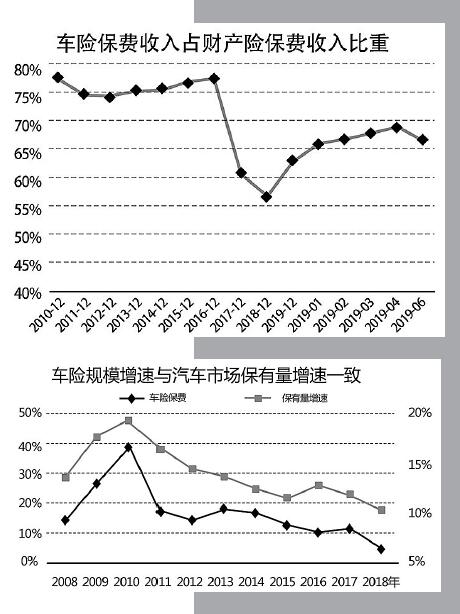 今年上半年,不仅车险保费增速放缓,上市险企的车险手续费也明显下降,显示出车险市场增长乏力,发展潜力日渐式微。2019年中期业绩报告显示,车险在财险中“一枝独大”的光环已逐渐消褪。人保财险和平安财险的车险保费增速分别为4.1%和9%,处于持续承压状态。