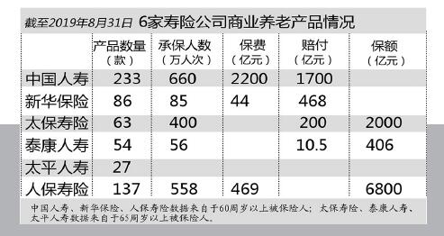 那么,当前商业养老保险市场发展如何呢?《金融时报》记者摸底了中国人寿、新华保险、太保寿险、太平人寿、人保寿险以及泰康人寿6家寿险公司商业养老保险产品情况。