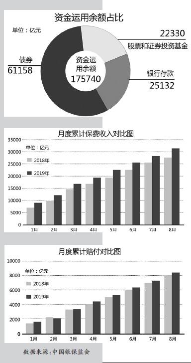 自去年以来,伴随着多项政策出台,保险资金便吸引了业内外众多关注的目光。银保监会披露的数据显示,截至今年8月底,保险资金运用余额达17.57万亿元。其中银行存款为2.51万亿元,占比为14.29%;债券为6.12万亿元,占比为34.83%;股票和证券投资基金为2.23万亿元,占比为12.69%。