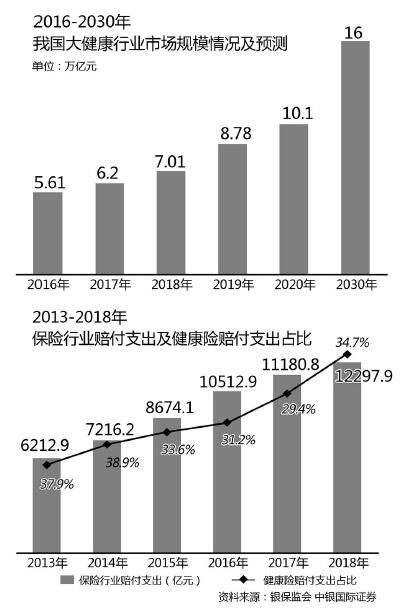 从投资端来看,健康险乐观的市场前景给了很多保险机构信心,纷纷探索与“大健康”产业融合,推动医疗健康管理服务与保险业务相互促进,部分大型保险公司的布局已颇见成效。