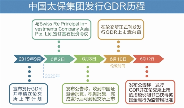 中国太保在GDR发行过程中创下沪伦通机制多项第一:第一次采用中国会计准则发行的GDR,第一次采用基石投资者机制发行的GDR,第一次非欧洲企业得到大众持股比例豁免的GDR,第一次在沪伦两地之间实施“云上市”的GDR。