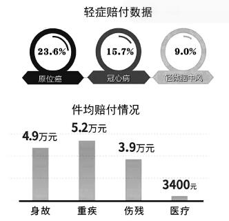 在梳理中,《金融时报》记者注意到,上半年重大疾病赔付金额、病种、年龄等相关指标变化不大,但是轻症赔付年轻化趋势明显。