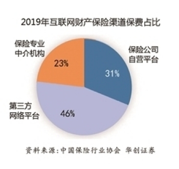 中保协的数据显示,2019年,保险公司通过第三方平台累计实现规模保费1619.8亿元,通过自营平台累计实现规模保费仅有237.9亿元。2019年互联网财产保险渠道保费占比中,第三方网络平台占比46%,高于保险公司自营平台31%的占比,更是保险专业中介机构占比的两倍。