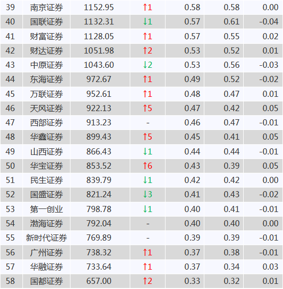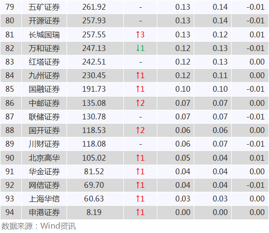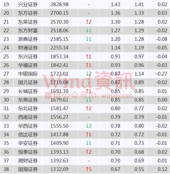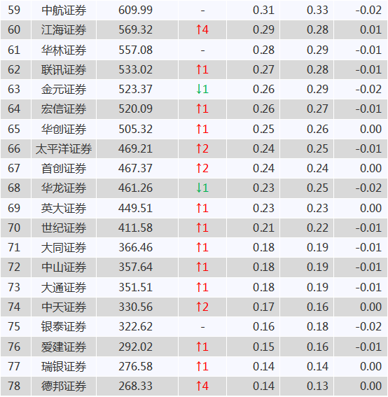 中信证券、银河证券和广发证券分列三四五位,市场份额分别为5.71%、4.6%和4.31%。