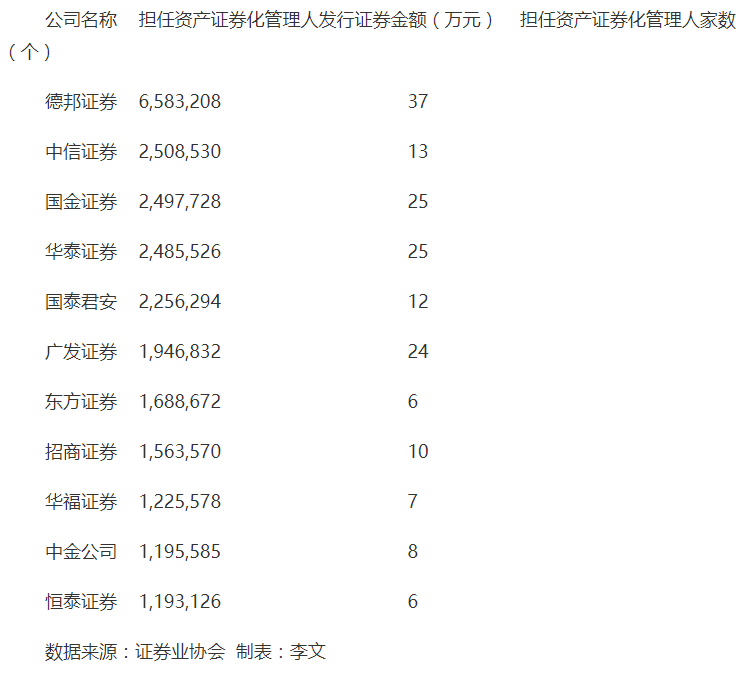 券商2016年度ABS业务相关指标