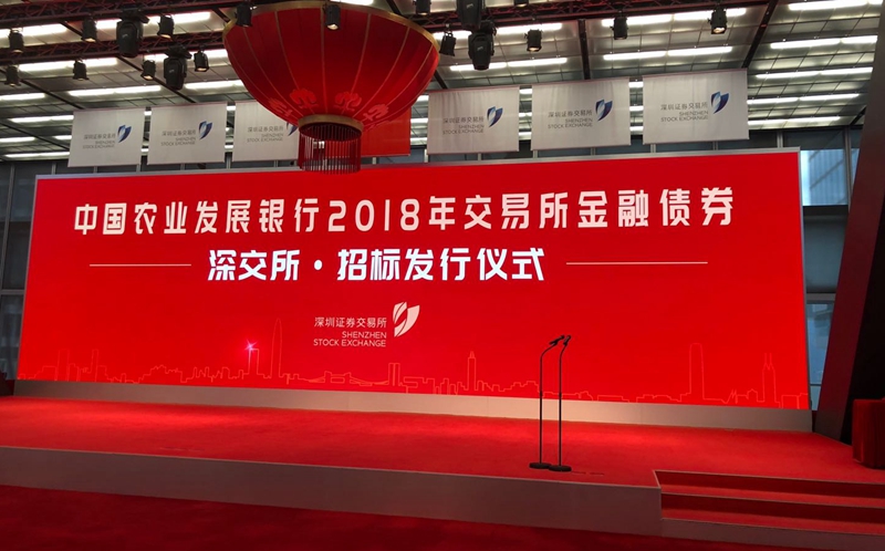 11月1日,农发行通过深圳证券交易所,以公开招标方式成功发行100亿元金融债券,这是农发行首次在交易所发行金融债券,标志着农发行顺利实现银行间、柜台、交易所市场等境内筹资渠道的全覆盖。本次发行的债券分别为:1年期50亿元,发行利率2.80%,低于前一日中债同期限债券估值12个基点,获得4.08倍认购倍率;2年期50亿元,发行利率3.36%,低于前一日中债同期限债券估值9个基点,获得3.98倍认购倍率。本次交易所债券承销商为浦发银行、江苏银行、东方证券、中信证券、建设银行、交通银行、南京银行、杭州银行、宁波银行、郑州银行、河北银行、第一创业证券、国海证券、申万宏源证券、招商证券、民生证券、国盛证券、万联证券、华西证券、浙商证券。