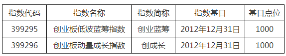 上证报讯 据深交所网站1月23日消息,为了反映创业板中蓝筹特色较为鲜明,以及成长性较为突出的两类股票的整体表现,丰富指数化投资标的,深圳证券交易所和深圳证券信息有限公司定于2019年1月23日发布创业板低波蓝筹指数和创业板动量成长指数。