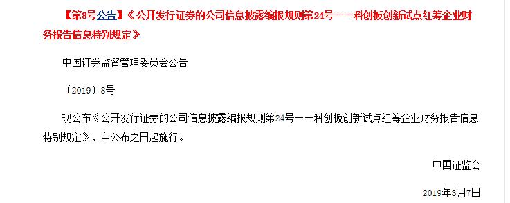 证监会发布《公开发行证券的公司信息披露编报规则第24号——科创板创新试点红筹企业财务报告信息特别规定》 。