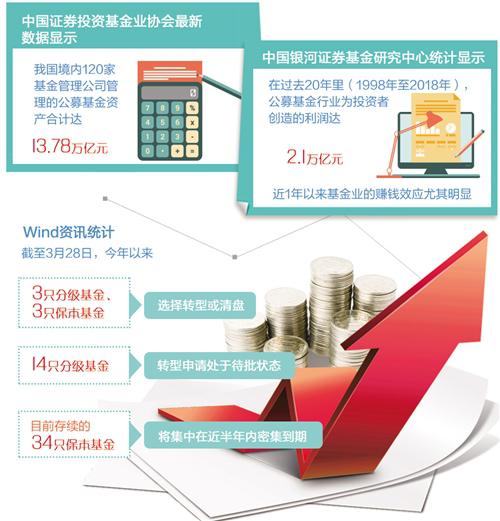 Wind资讯统计,截至3月28日,今年以来有3只分级基金、3只保本基金选择转型或清盘,另有14只分级基金转型申请处于待批状态,目前存续的34只保本基金将集中在近半年内密集到期。从已经转型和拟转型的基金类型来看,超七成选择转型为指数基金。