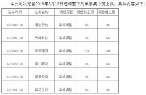 东方证券规定,自8月13日起,上调睿创微纳、光峰科技、中国通号等6只科创板股票的单票集中度上限,其中,中国通号单票集中度上限从15%调高至18%。