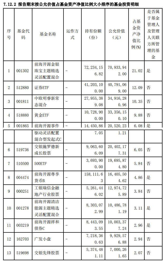 从持有人结构来看,个人投资者占比100%,据前海开源裕源FOF半年报数据,该基金规模3.37亿元,持有人户数2.56万户。