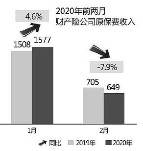 2月份,财险公司实现原保险保费收入649亿元,同比下降7.9%。在9个险种中,6个险种保费出险下滑。