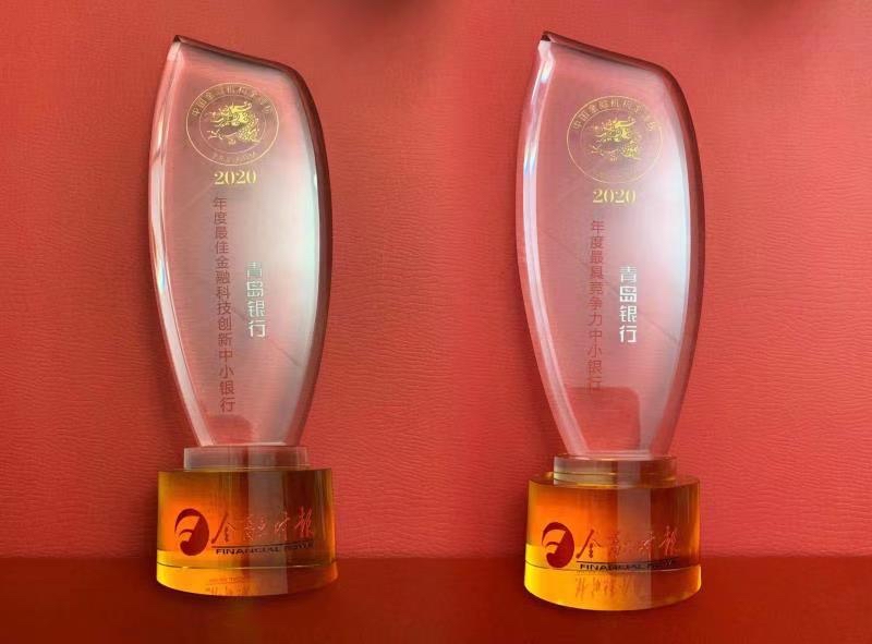 在持续对科技金融深耕和智慧化转型的助力下,2020年,青岛银行“5G智慧金融”场景应用项目力捧第三届“绽放杯”5G应用征集大赛“优秀奖”;“金融知识智能服务平台”荣获中国人民银行“2019年度银行科技发展奖”三等奖;荣获青岛市大数据发展促进会“2020年度青岛市重点大数据企业”“青岛市大数据发展促进会2019-2020年度优秀会员”荣誉称号;“对公智能CRM系统”荣获“青岛市2019—2020年度优秀年度大数据应用案例”奖项。