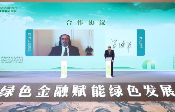 近日,中国绿色金融改革创新研讨会在湖州市召开,会上,湖州银行与亚洲开发银行就环境和社会责任以及可持续金融合作关系签订谅解备忘录,成为境内首家与亚开行签订合作备忘录的商业银行。